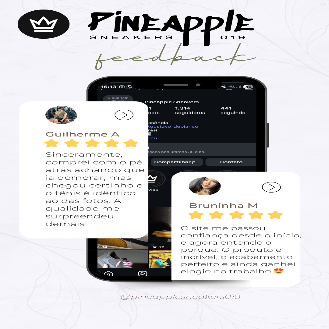 A Pineapple Sneakers 019 é uma marca que vive o streetwear como linguagem e identidade. Cada detalhe — do nome ao símbolo, das cores aos materiais — traduz a essência urbana de quem se expressa com os pés no asfalto e o estilo na alma. Não seguimos tendências: criamos presença. Somos o ponto de encontro entre cultura, moda e autenticidade.